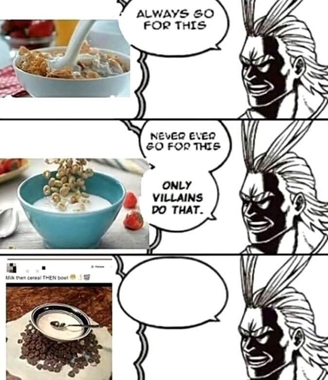 All might meme only villains do that. Posting this to be put on r animemes. In 2017 a meme was birthed when the character known as all might from my hero academia was exploited into an image where he branded something desirable as the always option while the less than desirable option was deemed as something only villains do the meme picked up steam late last year and has surprisingly seen a surge in 2019. Featured only villains do that all might memes. Reddit source sandrohc. Press the and keys to navigate the gallery g to. All might meme using the only villains do that format. Always go for this only villains do that my hero academia deku izuku midoriya ochako uraraka bakugou katsuki mitsuki milf all might dispute authorship edit history about the creator.